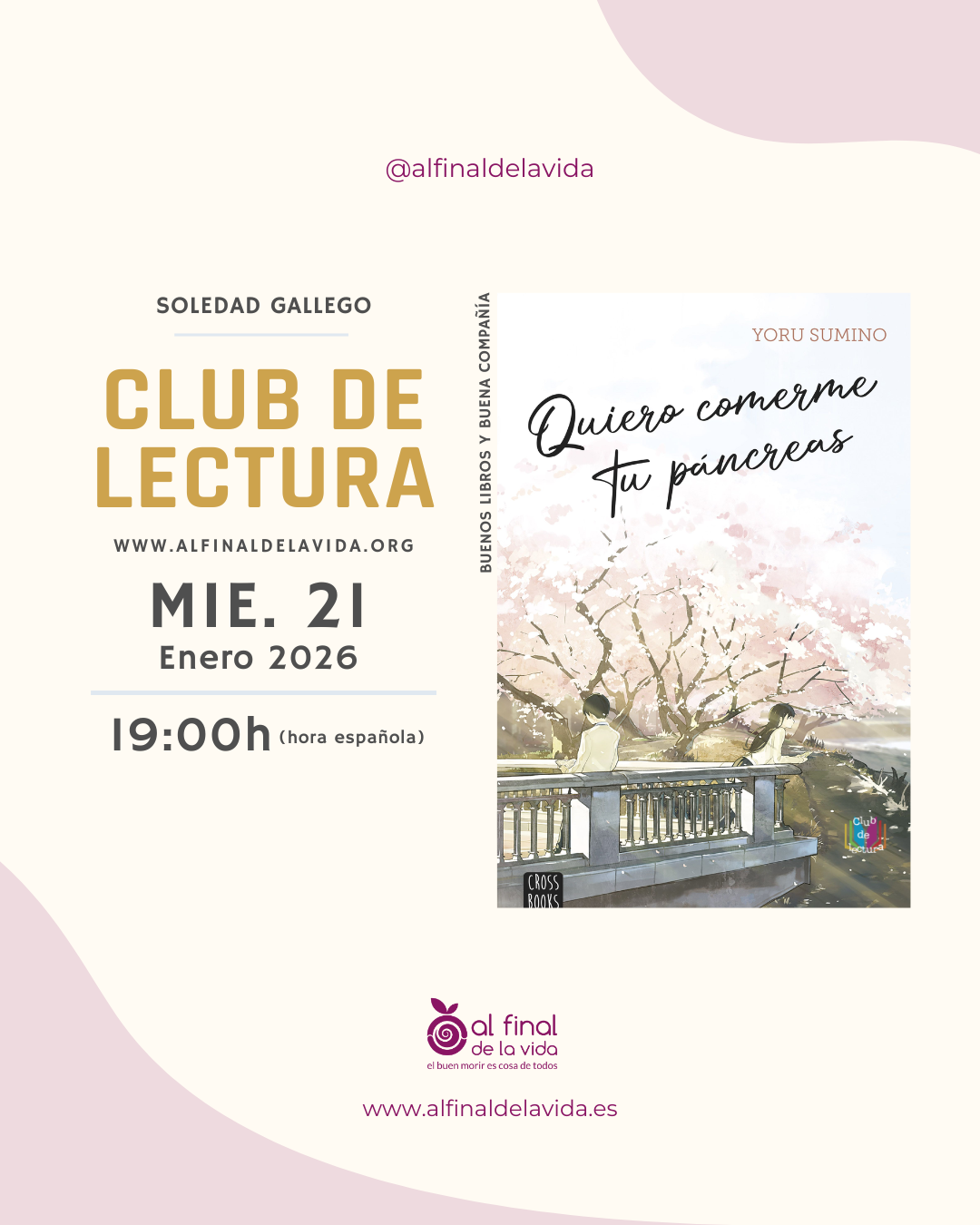En esta sesión del Club de Lectura de Al Final de la Vida reflexionaremos sobre la muerte gracias al libro "Quiero comerme tu páncreas"