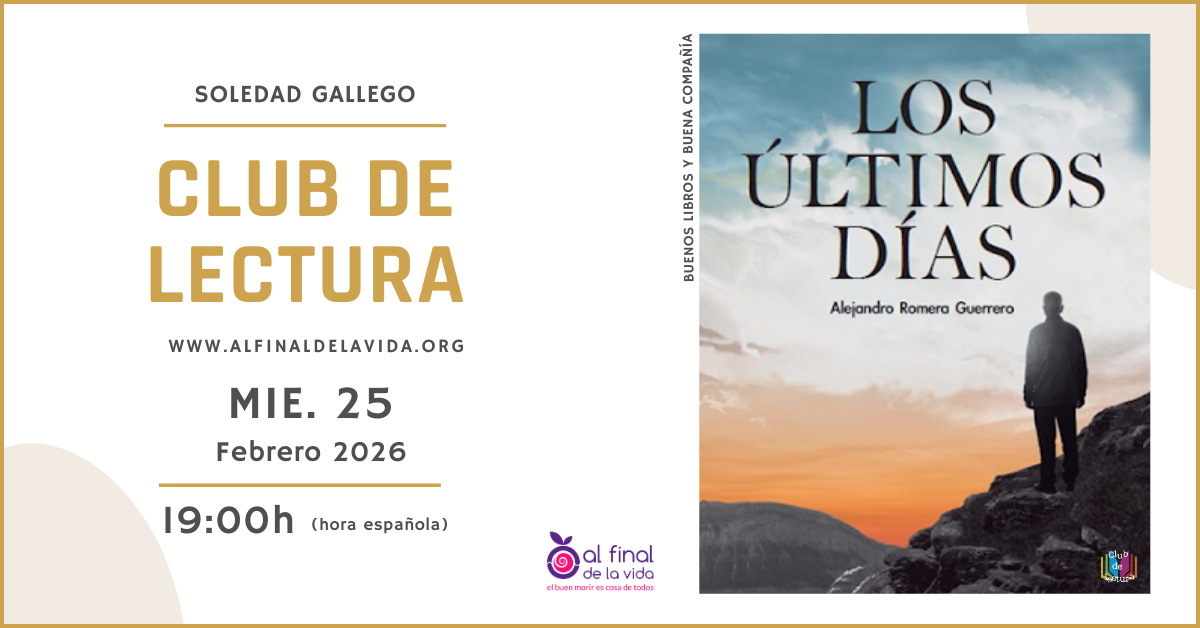 - Dispones de un grupo privado de facebook: Club de Lectura – Al final de la Vida para hacer el seguimiento de la lectura y animarnos entre todos a terminar el libro. Mándanos la petición de amistad para formar parte de él.
